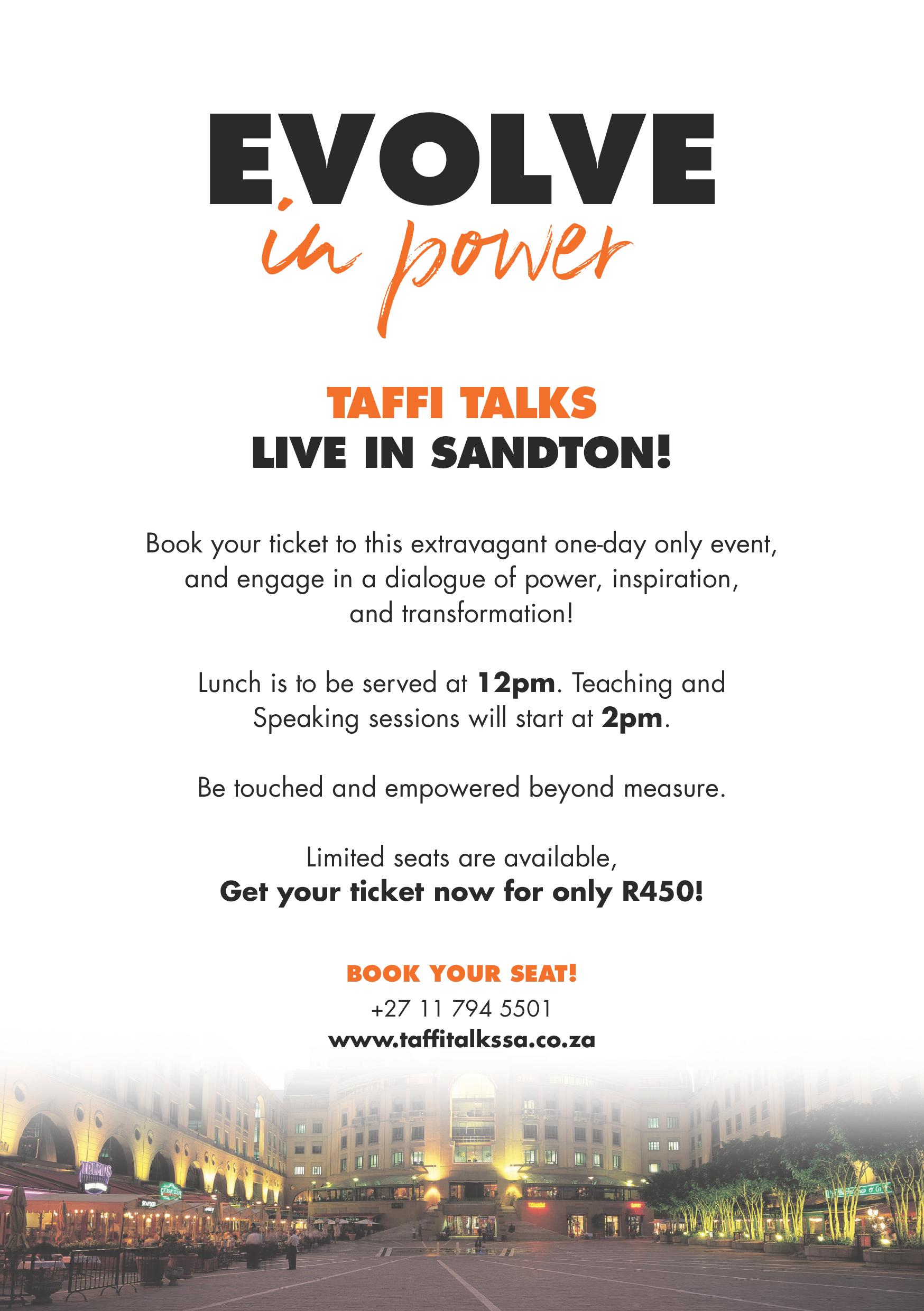 Taffi Dollar is globally-renowned as a dynamic force for change and transformation and is a successful entrepreneur, speaker, teacher, spiritual leader and best-selling author. Born and raised in Georgia, USA, Taffi Dollar is hosting “Taffi Talks Live”, a one day only event on 23rd August at the Sandton Convention Centre in Johannesburg.
